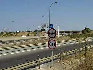 Prohibido el tránsito a vehículos pesados | Prohibido el paso a vehículos pesados.[2] |