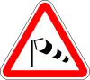 Vento laterale | Preseñaliza la posibilidad de fuertes rachas de viento lateral. La dirección de la banderola indica la dirección en la que el viento suele soplar frecuentemente. |