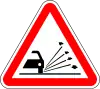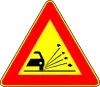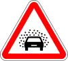 Grava | Preseñaliza la presencia de grava, material diminuto o gravilla que puede proyectarse a distancia o lanzarse al aire desde los vehículos que pasan. |
