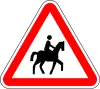 Jinetes | Preseñaliza un lugar donde existe la posibilidad de encontrar jinetes cabalgando por la calzada o atravesándola. |