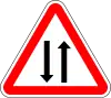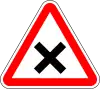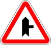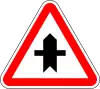 Intersección con carretera sin preferencia | Preseñaliza una intersección con una carretera de menor importancia y cuyos vehículos tienen que ceder el paso ya vengan por la derecha o por la izquierda |