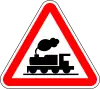 Ubicación de paso a nivel sin barreras | Señala un paso a nivel o un cruce de tranvía sin barreras con una sola vía y, por lo tanto, invita a los conductores a ejercer la máxima precaución, invitándoles a detenerse inmediatamente si las dos luces rojas parpadeantes y/o la señal acústica que indica la aproximación del tren están activas. |