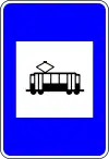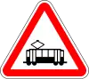 Intersección con vehículo rodado sobre vías | Señala una intersección con la carretera por la que circulan vehículos ferroviarios que no es un paso a nivel (cruce de tranvía). |