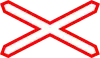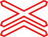 Paso a nivel sin barreras | Señala un paso a nivel sin barreras y se integra con el panel rojo de tres barras espaciadoras. |
