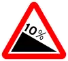 Descenso peligroso | Preseñaliza un tramo de carretera que desciende en el sentido de la marcha. La pendiente se expresa en porcentaje. |