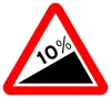 Subida con pendiente acentuada | Preseñaliza un tramo de carretera que sube con una fuerte pendiente en el sentido de la marcha. La pendiente se expresa en porcentaje. |