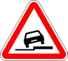 Carretera resbaladiza | Preseñaliza un tramo de carretera que por condiciones particulares climáticas o ambientales podría resultar resbaladiza para la circulación. |