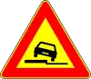Calzada resbaladiza | Preseñaliza un tramo de carretera que por condiciones climáticas o ambientales particulares puede volverse resbaladizo. |