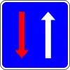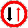 Preferencia de paso en estrechamiento | Indica prioridad sobre los vehículos que vienen en dirección opuesta en una carretera de doble sentido que sólo permite el paso de una fila de vehículos |