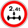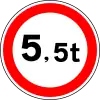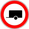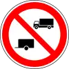 Prohibido el tráfico con vehículos con remolque por encima del peso indicado | Todos los vehículos con un remolque de dos o más ejes están prohibidos. Este requisito podrá limitarse únicamente a los vehículos cuyo remolque supere un determinado límite de peso, en cuyo caso el límite de peso se indicará en un panel suplementario o en la plantilla del remolque (como en el ejemplo). |