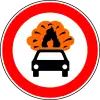 Prohibido el tráfico de vehículos de transporte de mercancías explosivas o inflamables. | Prohíbe la circulación de vehículos que transportan mercancías explosivas o inflamables. |