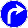 Curva peligrosa a la derecha | Preseñaliza un tramo de carretera no rectilíneo por la limitada visibilidad o por la característica del trazado (curva estrecha a la derecha). |