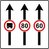 Límites de velocidad generales | Indica los límites de velocidad generales del estado, válidos para coches de pasajeros y motos. Se encuentra cerca de las fronteras. |