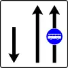 Señaliza un tramo de carretera que pasa de sentido único a doble sentido de circulación. |