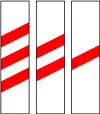 Paneles espaciadores para el cruce de nivel del margen derecho | Indican que faltan 300, 200 y 100 metros del paso a nivel para el que están instalados. Se encuentran en el lado derecho de la calzada. |