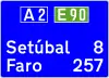 Señal de confirmación de dirección | Indica la distancia al centro urbano de varias ciudades siguiendo la carretera. |