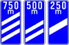 Panel con distancia para la próxima salida | Indica que a 750, 500 y 250 metros se encuentra el inicio de la salida de la autopista que se venía señalando. Se instalan a la derecha de la calzada. |