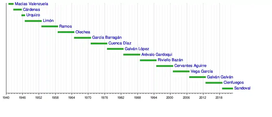 Salvador Cienfuegos | 1 de diciembre de 2012- 30 de noviembre de 2018 |
