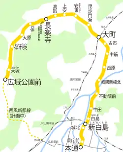 - Es una línea de tren de cercanías operada por Saitama Railway Corporation. Se forma como continuación de la línea Namboku del Metro de Tokio, a partir de la estación de Akabane-Iwabuchi, en Tokio, y termina en la estación de Urawa Misono, en Saitama. Fue terminada el 28 de marzo de 2001, a tiempo para la Copa Mundial de la FIFA 2002, como acceso al Estadio de Saitama.