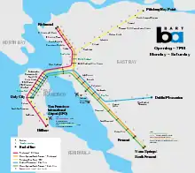 042 | pas | km | AmN-11 | USA-08 | ![]() | Metro de San Francisco [nota 14] | San Francisco | ![]() | 11 de septiembre de 1972 | 5 | 44[nota 15] | 167 | 400 300 (2013)[10] | ![]() |