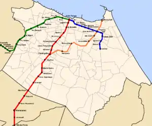 084 | 011 | km | Af-1 | EGY-01 | ![]() | Metro de El Cairo | El Cairo | ![]() | 27 de septiembre de 1987 | 3 | 57 | 70,2 | 4 000 000[54] | ![]() |