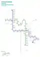 - Aunque el metro de Taipei tiene 11 "líneas" con sus propios nombres, en realidad hay 5 "rutas" principales (es decir, "servicios"), sin incluir ramales —Xiaonanmen, Xiaobitan y Beitou— que pertenecen al sistema de MRT. Véase el artículo en inglés diferencia entre "lines" y "routes".