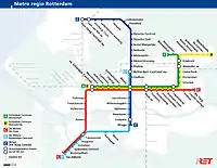 036 | pas | km | E-20 | NED-02 | ![]() | Metro de Róterdam | Róterdam | ![]() | 9 de febrero de 1968 | 5 | 62 | 78,3 | 250 000[34] | ![]() |