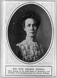 - Signe Bergman (1869–1960) - cofundadora y presidenta de la Asociación Nacional para el Sufragio de la Mujer