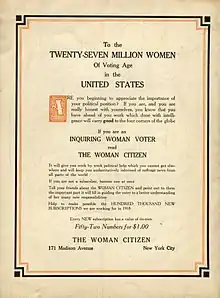 - Woman's Journal and Suffrage News - importante periódico semanal fundado por Lucy Stone y Henry Blackwell en 1870, que finalmente absorbió otras publicaciones de sufragio