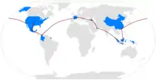- El lugar en azul subrayado indica aquel equipo que llegó en último lugar en una etapa no eliminatoria.