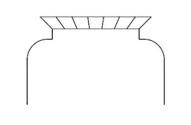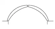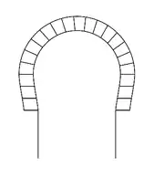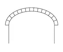 - Arco con intradós horizontal o casi horizontal, con poca o ninguna convexidad. Las dovelas se disponen radialmente en forma de cuña.