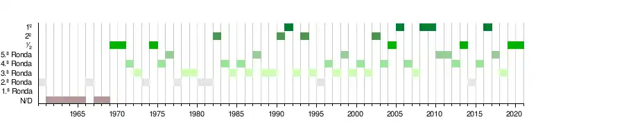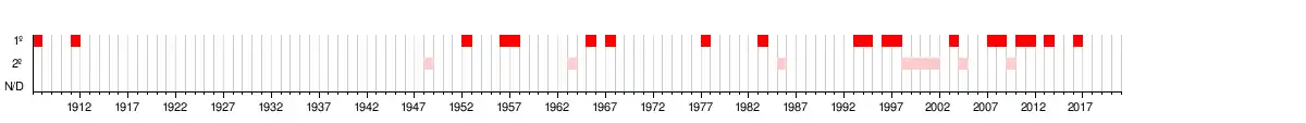 Títulos | 0 | 0 | 0 | 0 | 0 | 0 | 0 | 0 | 0 | 0 | 0 | 0 | 0 | 0 | 0 | 0 | - | - | - | - | 0 | 0 | 0 | 1 | 1 | 0 | 1 | 2 | 0 | 0 | 0 | 0 | 0 | 0 | 0 | 0 | 0 | 0 | 0 | 0 | 0 | 0 | 0 | 0 | 0 | 0 | 0 | - | 0 | - |