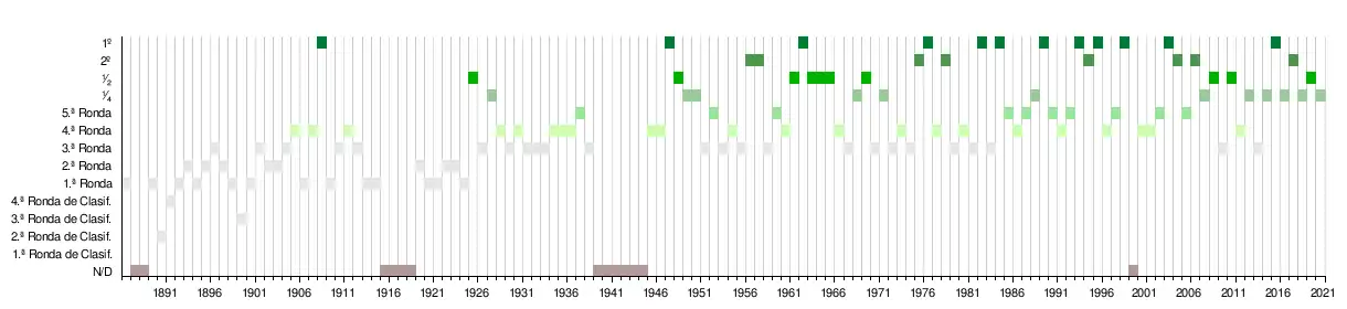 FA Cup | 3ª R | 1.° | 3ª R | 4ª R | 3ª R | 2.° | 4ª R | 1 | 2.° | 3ª R | 4ª R | 3ª R | ¹⁄₄ | 3ª R | 3.° | ¹⁄₄ | 3ª R | 4ª R | ¹⁄₂ | ¹⁄₂ | ¹⁄₂ | 1.° | ¹⁄₂ | 4ª R | 5ª R | 3ª R | 2.° | 2.° | 3ª R | 4ª R | 3ª R | 5ª R | 3ª R | ¹⁄₄ | ¹⁄₄ | ¹⁄₄ | ¹⁄₂ | 1.° | 4ª R | 4ª R | 3ª R | 5ª R | 4ª R | 4ª R | ||||||