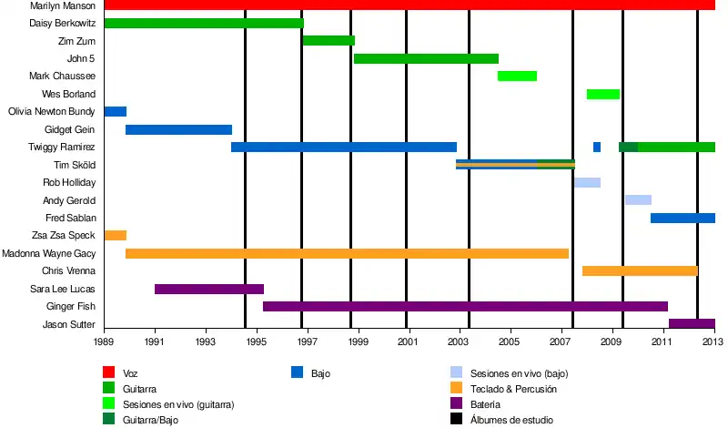 La discografía de Marilyn Manson, banda estadounidense de metal industrial formada a comienzos de la década de los años 1990, consiste en diez álbumes de estudio, un álbum en vivo, un álbum recopilatorio, dos EP, treinta y un sencillos, seis DVD y treinta y dos videoclips. La banda ha seguido los pasos de otras agrupaciones importantes como Kiss, Judas Priest o Queen y de otros solistas como Ozzy Osbourne, Alice Cooper y David Bowie, entre muchos otros.[1] Más de 50 000 000 de unidades vendidas en todo el mundo certifican la exitosa carrera de la banda estadounidense.[2][3][4]