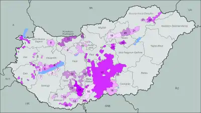Regiones vinícolas de Hungría productoras de vinos de calidad con denominación de origen.