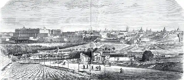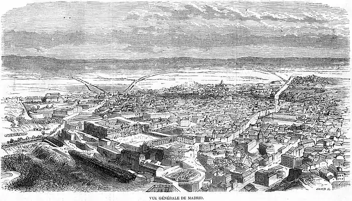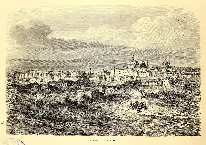Vista de Madrid publicada en L'Espagne de Charles Davillier.[10] | |