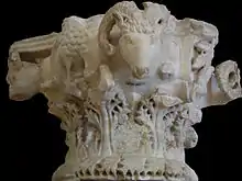 Sobre del túmulo se hallaron restos que podrían pertenecer a la base del pedestal del León de Anfípolis.[31] El equipo arqueológico, dirigido por Katerina Peristeri, planteó en 2014 que esta conocida escultura monumental de un león sedente de mármol, descubierta a principios del siglo XX por miembros del ejército griego, habría servido originalmente como pináculo o coronación del túmulo.[30]