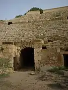 Los espectadores entraban en el anfiteatro por unas trincheras de acceso excavadas en la colina, de las cuales la principal estaba flanqueada por monumentales columnas jónicas. Las gradas estaban comunicadas mediante galerías interiores en forma de anillo.[15]
