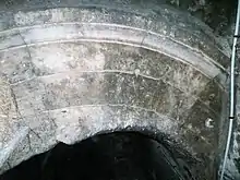 la parte superior de un pedestal (capitel moldeado) y la base del arco.