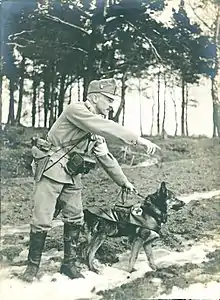 El ejército Imperial Alemán utilizó con 30.000 perros adiestrados.[24] El cuerpo sanitario contaba con 2500 perros sanitarios (sanitätshunde) empleados en la búsqueda de heridos en el campo de batalla. Después de la guerra, Francia reclamó una indemnización por la pérdida de 26.000 perros como parte de las reparaciones de la Primera Guerra Mundial.[34]
