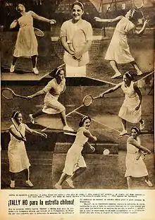 Anita Lizana de Ellis (Quinta Normal, Santiago, Chile; 19 de noviembre de 1915-Ferndown, Inglaterra; 21 de agosto de 1994) fue la «mejor tenista chilena del siglo XX», según los especialistas internacionales.[n. 3] Durante su carrera en las décadas de 1930 y 1940, llegó a ser la «mejor tenista del mundo» anualmente en 1937, siendo la única hispanoamericana en lograrlo,[n. 4] así como la primera persona latinoamericana en liderar el tenis y ganar algún título de Grand Slam: el Abierto de los Estados Unidos en 1937.[6] Finalizó octava del mundo en 1936. Obtuvo 24 títulos, 17 individuales y siete en dobles.[1]