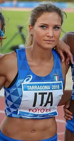 En 2019, el combinado relevista italiano quedó quinto en el Campeonato Mundial de Carreras de Relevos de Yokohama (Japón), marcando 44,29 segundos de tiempo.[17] Esa misa posición lograrían más adelante en el Campeonato Europeo de Atletismo por Naciones de 2019 de Bydgoszcz (Polonia), con tiempo de 44,20 segundos.[18] Bajarían hasta el séptimo lugar en el Campeonato Mundial de Atletismo de Doha (42,98 segundos).[19] A mediados de octubre, viajó hasta Wuhan (China), para participar en los Juegos Mundiales Militares. Aquí, nuevamente, lograría buenos registros en solitario, siendo quinta en los 100 metros (11,66 segundos), como grupal, quedando sexta con las relevistas de 4 x 100 metros (44,95 segundos).