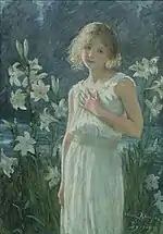 1888 | Óleo sobre lienzo pintado en madera. | Academia de Pennsylvania de las bellas artes, Filadelfia, Pensilvania | Expuesto en el Salón de París de 1888. Ganadora de la Medalla de Oro del Templo de 1889 de PAFA (la primera mujer galardonada con la medalla) |