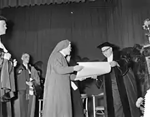 ![]() Anna Dengel recibe un doctorado honorario de la Universidad Radboud de Nimega en 1958 | ||