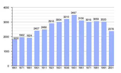 Gráfica de evolución demográfica de Anoia entre 1861 y 2001 |