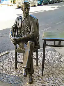 ![]() Estatua de António Aleixo en Loulé, frente al bar "Calcinha", frecuentado en vida por el poeta | ||