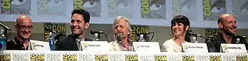 - Un exagente de S.H.I.E.L.D.,[46] entomólogo y físico que se convirtió en el Ant-Man original en 1963 luego de descubrir las partículas subatómicas que posibilitan la transformación. Más adelante es mentor de Lang para que asuma el papel.[10][11][24][47] Douglas comparó su decisión de unirse a una película de superhéroes con su papel en Behind the Candelabra, diciendo, "A veces —como [cuando] no te ven como Liberace— hay que sacudirlos un poco y divertirse un poco."[48] Al describir a Pym, Douglas dijo, "Es un tipo formal del norte de California. Ha perdido el control de su compañía. Vive en una especie de distorsión temporal. Siempre fue un poco chapucero. Tiene un laboratorio, más muchas otras cosas, en su sótano de las que nos enteramos. Sin dudas está amargado por lo que pasó con su compañía y muy asustado de qué deparará el futuro, porque él mismo, luego de haberse encogido tantas veces, es difícil. Busca e intenta encontrar a alguien con quien pueda trabajar y que tenga las características correctas, que es [Scott]."[20] Douglas indicó que no usaría el traje de Ant-Man.[49]
