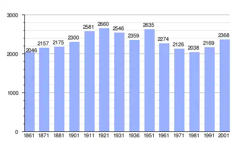 Gráfica de evolución demográfica de Antegnate entre 1861 y 2001 |