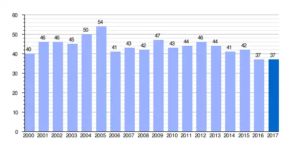 Gráfica de evolución demográfica de Antezana de la Ribera[2] entre 2000 y 2017 |