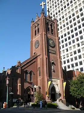 La iglesia sobrevivió al terremoto de San Francisco de 1906, solo para ser destruida un día después por los incendios iniciados por el terremoto. Los incendios fundieron las campanas de la iglesia y el altar de mármol. Todo lo que quedó fueron las paredes de ladrillo exterior y la torre-campanario. La reconstrucción de la iglesia finalizó en 1909.